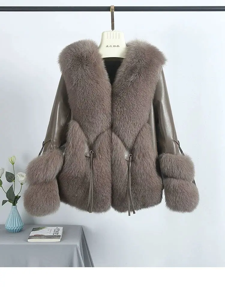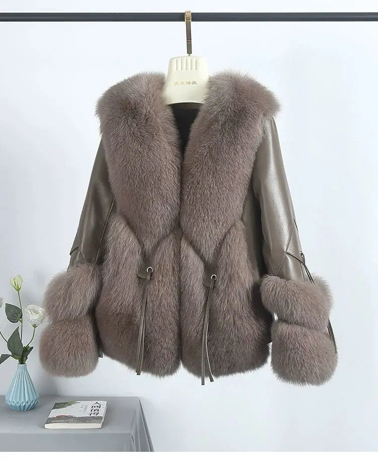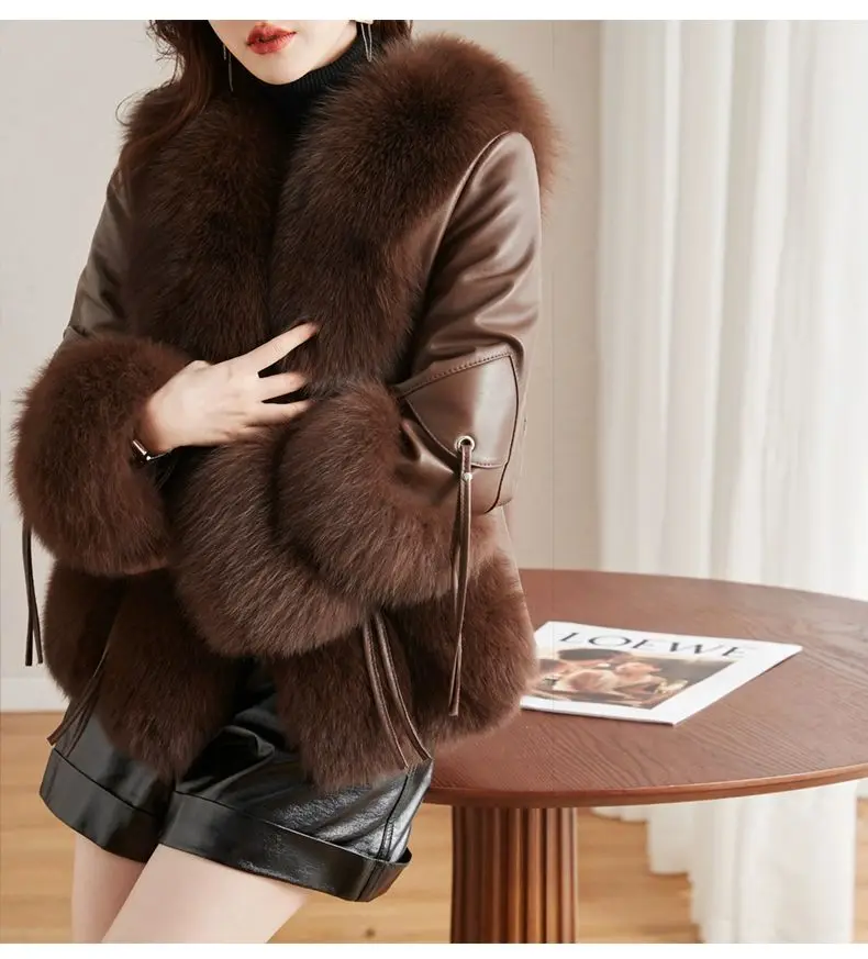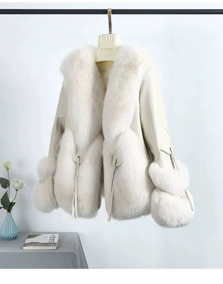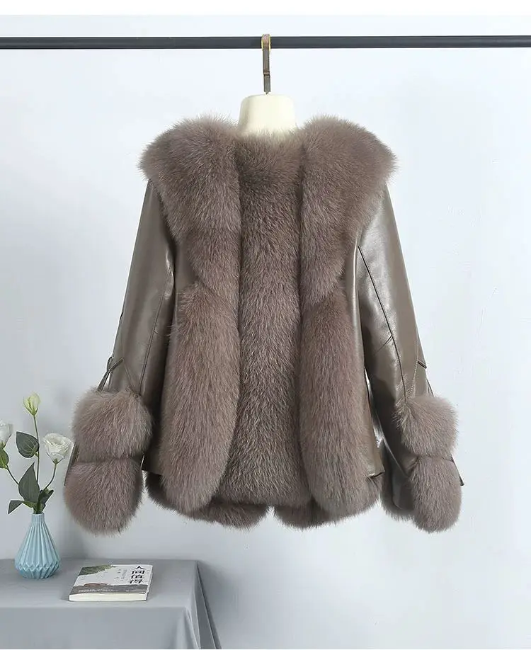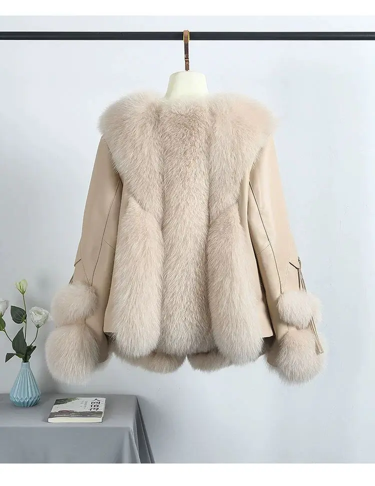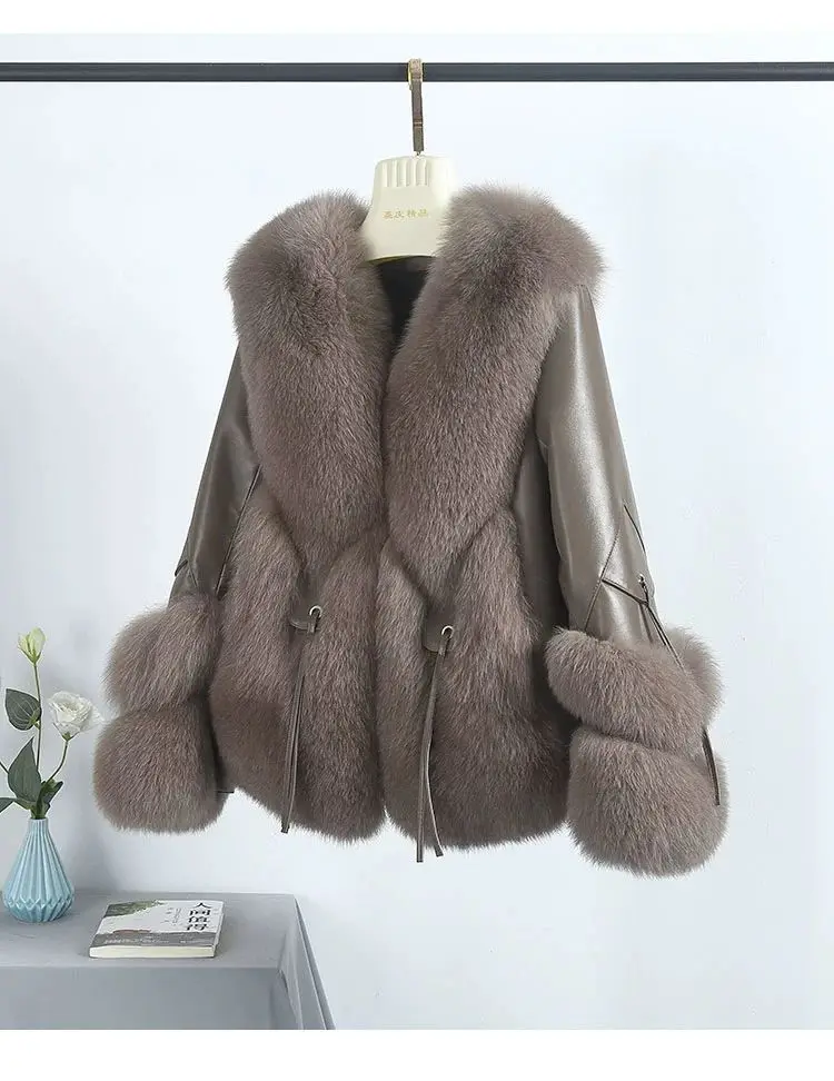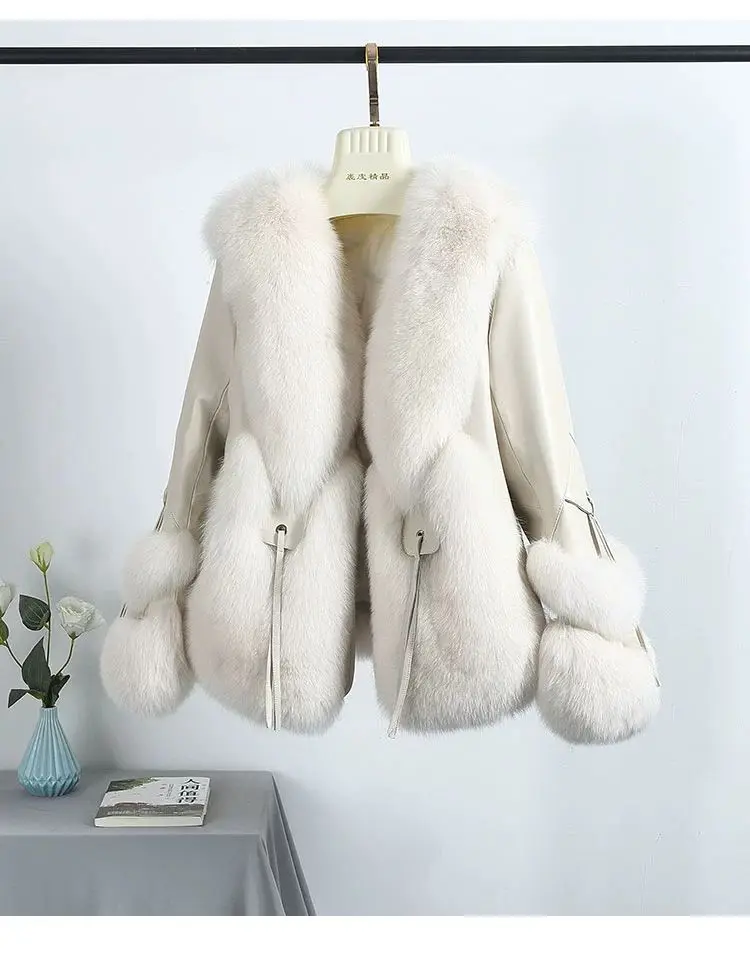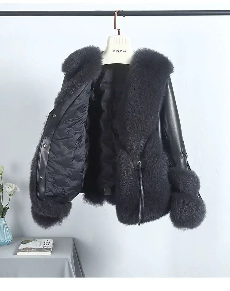 Real Fox Fur Coats With down Genuine Sheepskin Leather