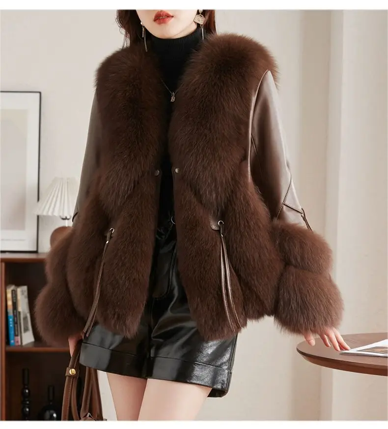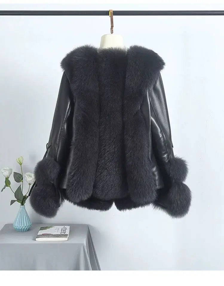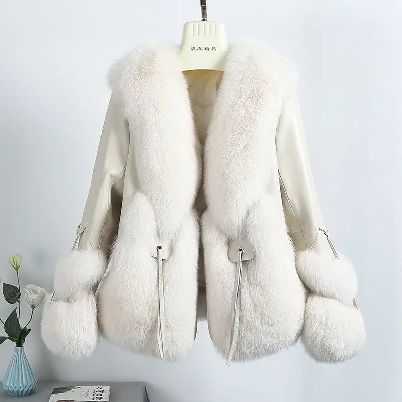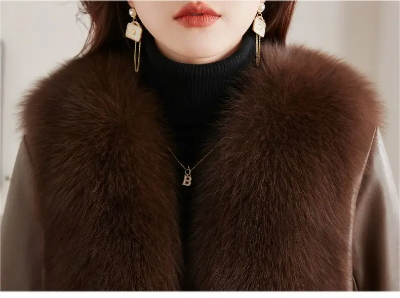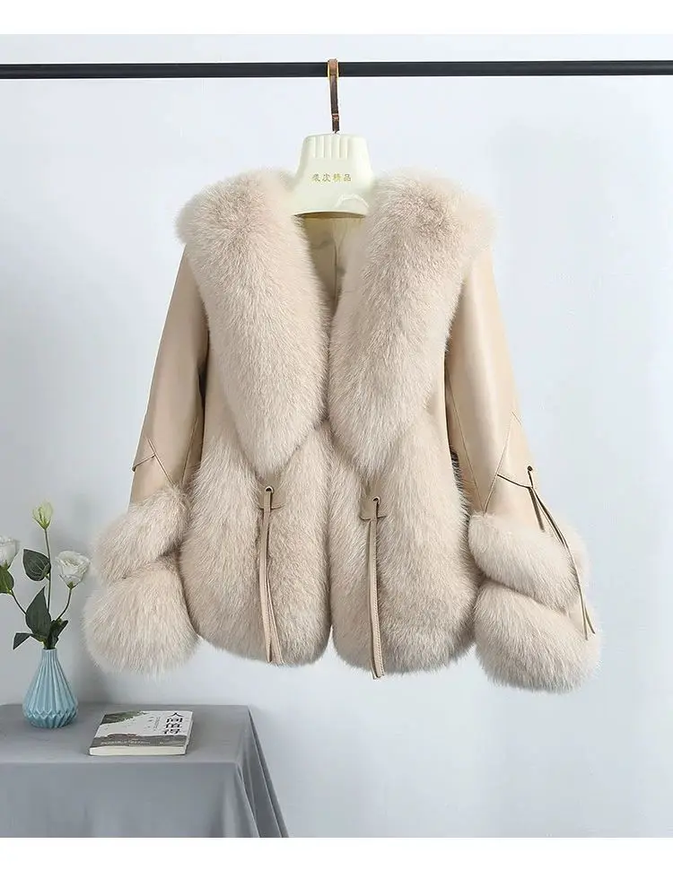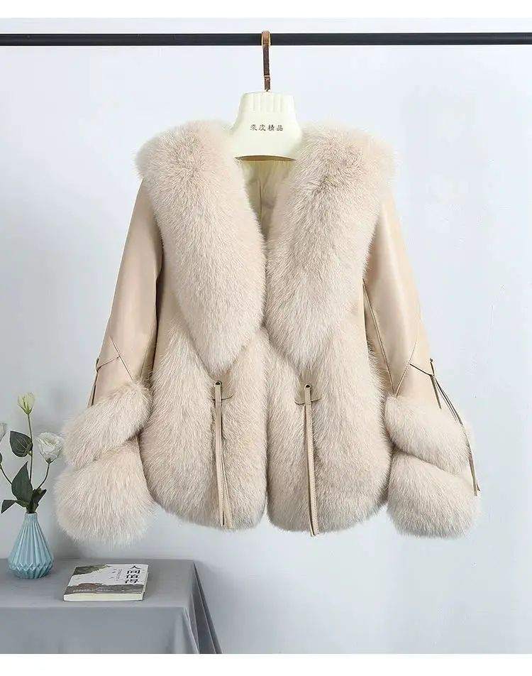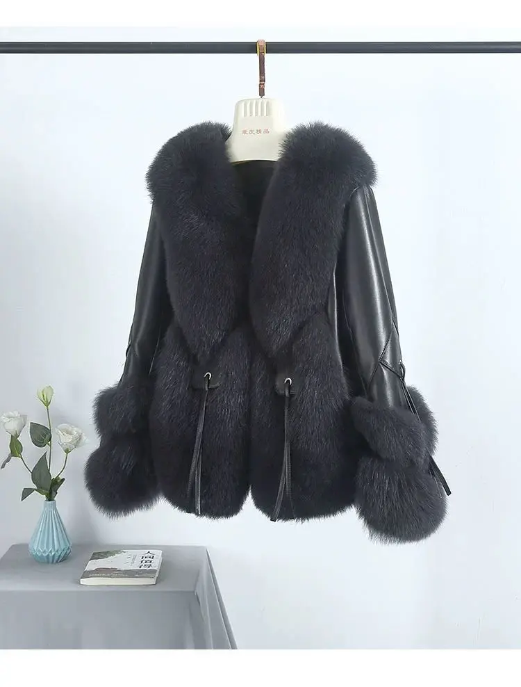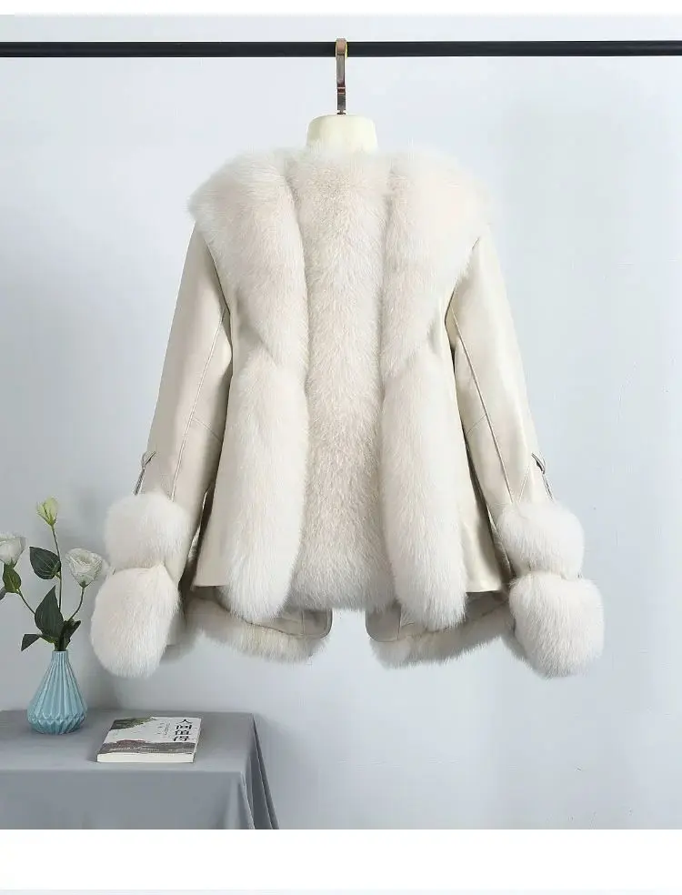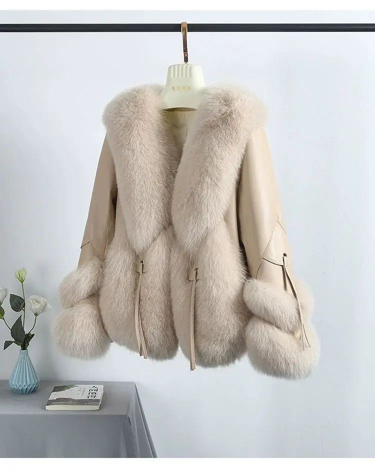 Real Fox Fur Coats With down Genuine Sheepskin Leather