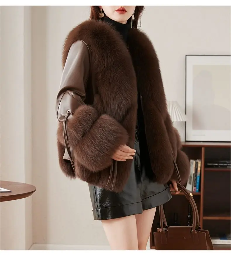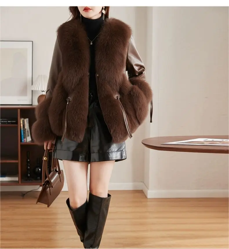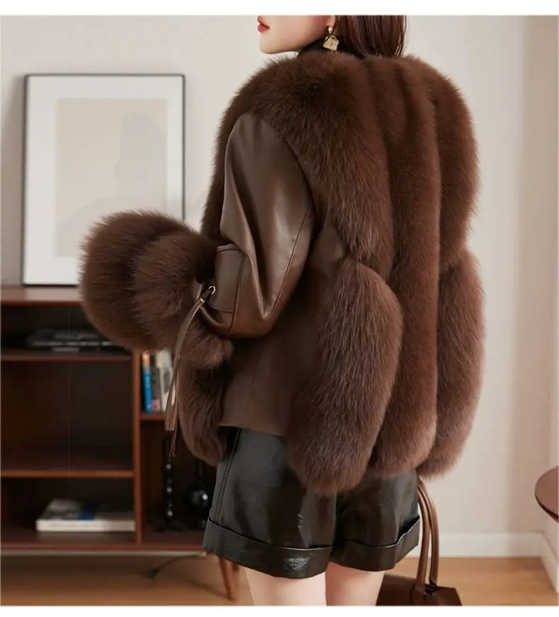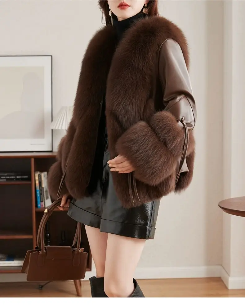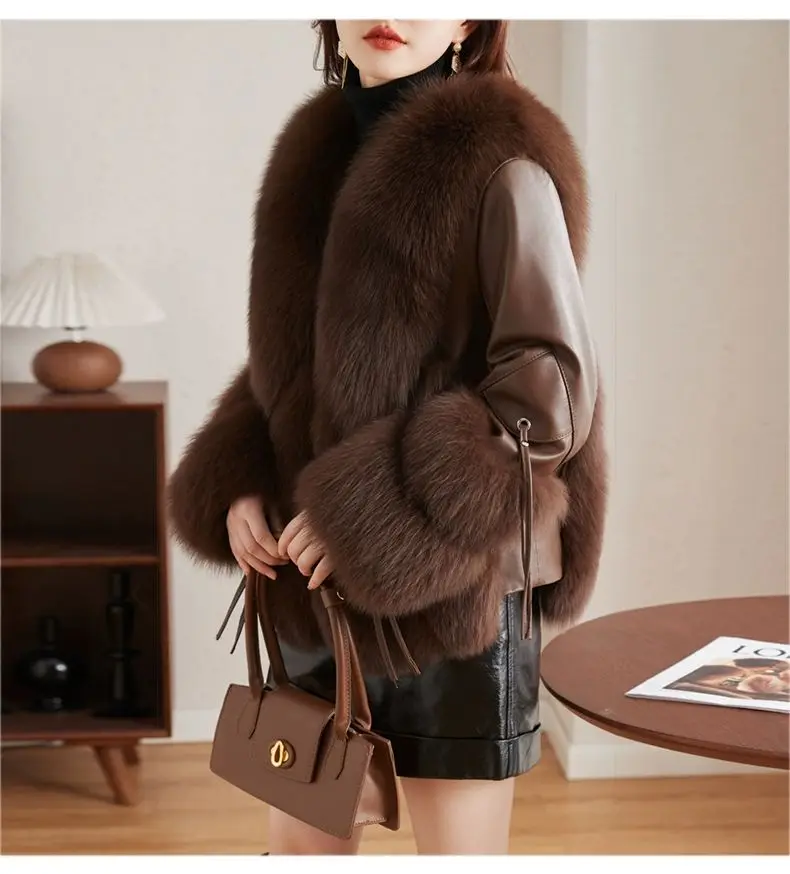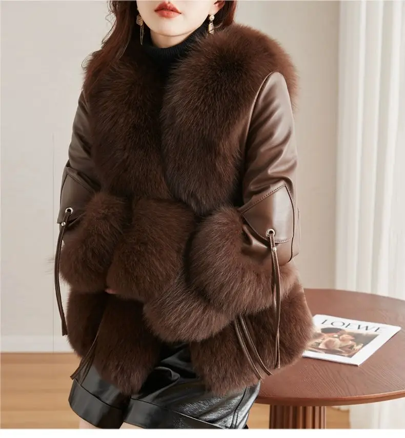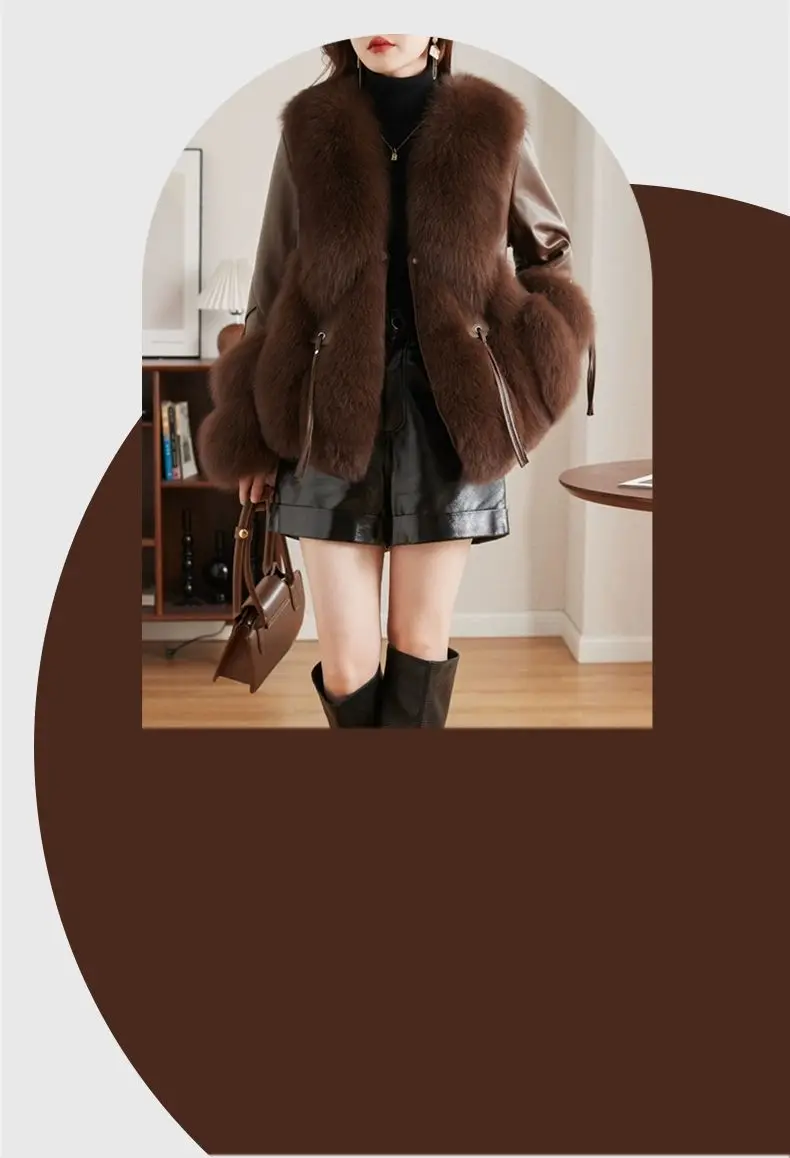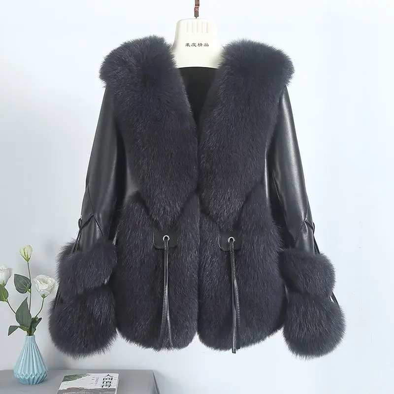 Real Fox Fur Coats With down Genuine Sheepskin Leather
